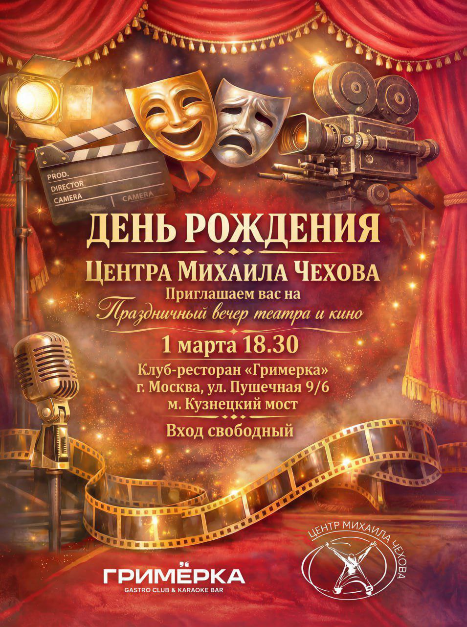 1 марта Центр Михаила Чехова приглашает друзей, партнёров и всех ценителей искусства на праздничный вечер театра и кино.